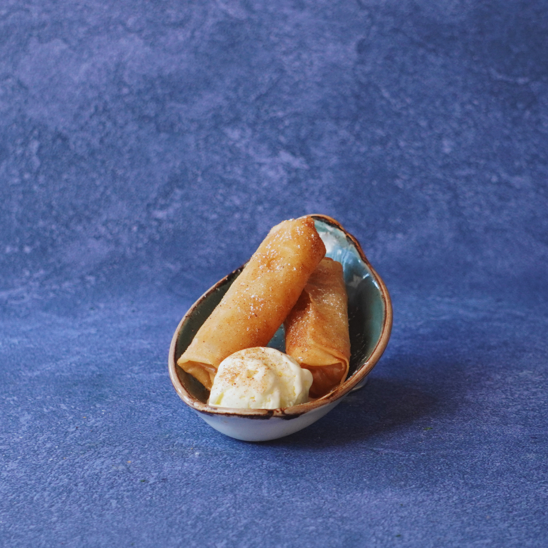 Light and flaky pasty, filled with hot apple pie filling & served with ice cream